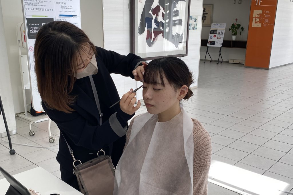 ビューティーアドバイザーによるワンポイント就活メイク体験。